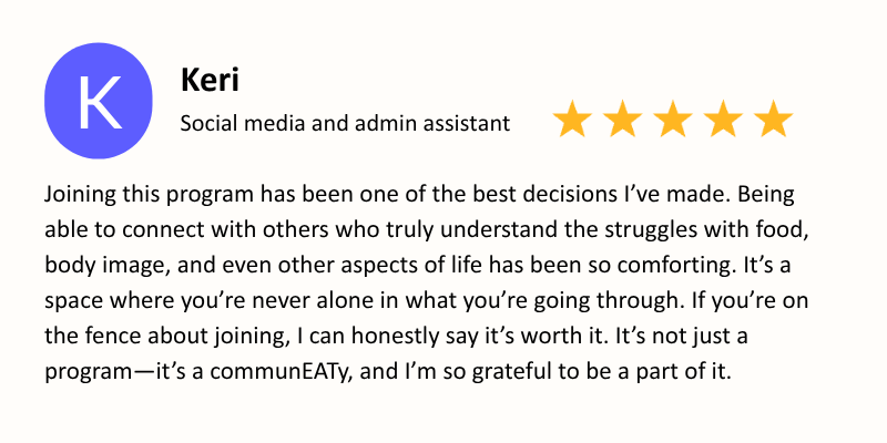 Disclaimer: This membership is not intended to replace comprehensive eating disorder treatment. While we may address eating disorder terminology at times, the information we offer is for supportive and educational purposes only.